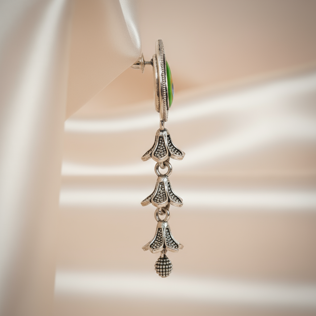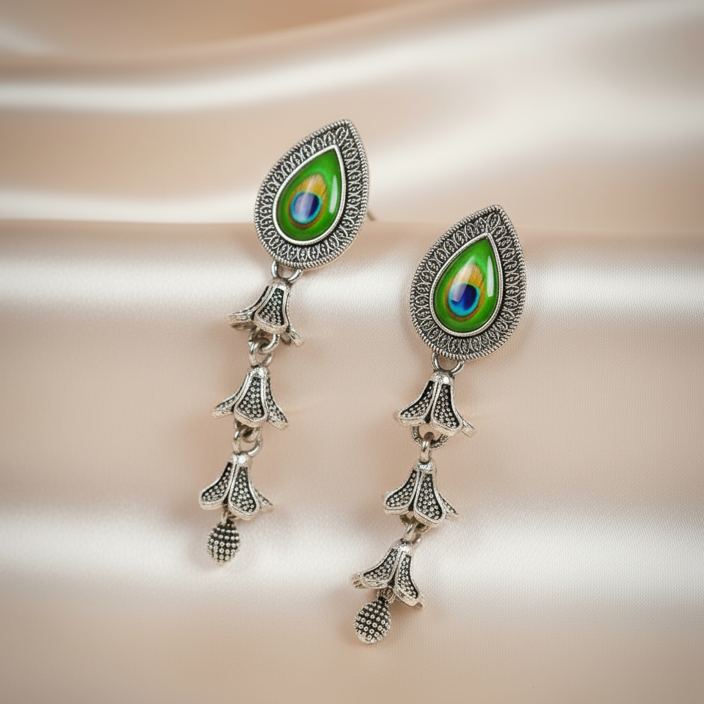• Elegant Peacock Feather Inspired Silver Dangle Earrings – Handmade Ethnic Jewelry for Women