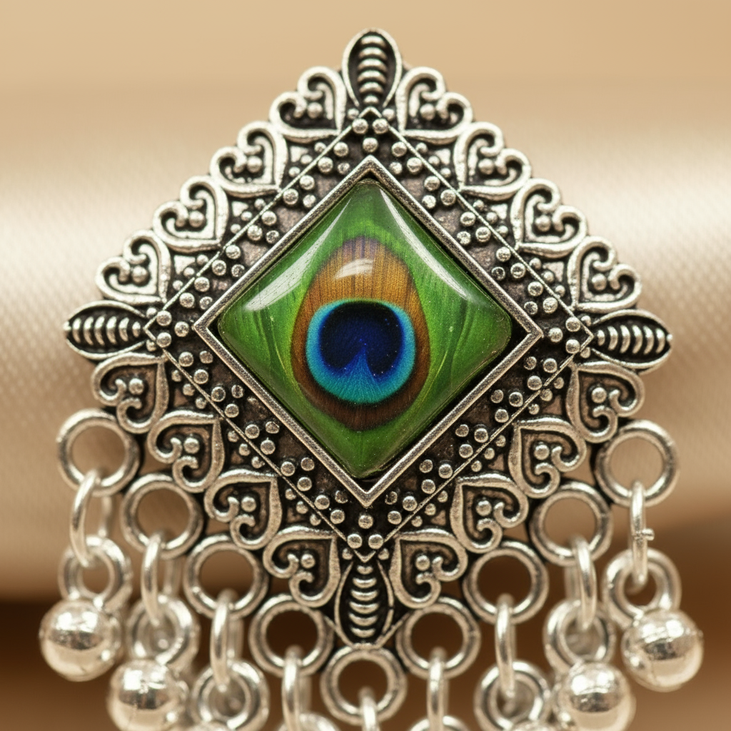 • Elegant Peacock Feather Silver Earrings – Traditional Indian Tribal Jewelry for Women