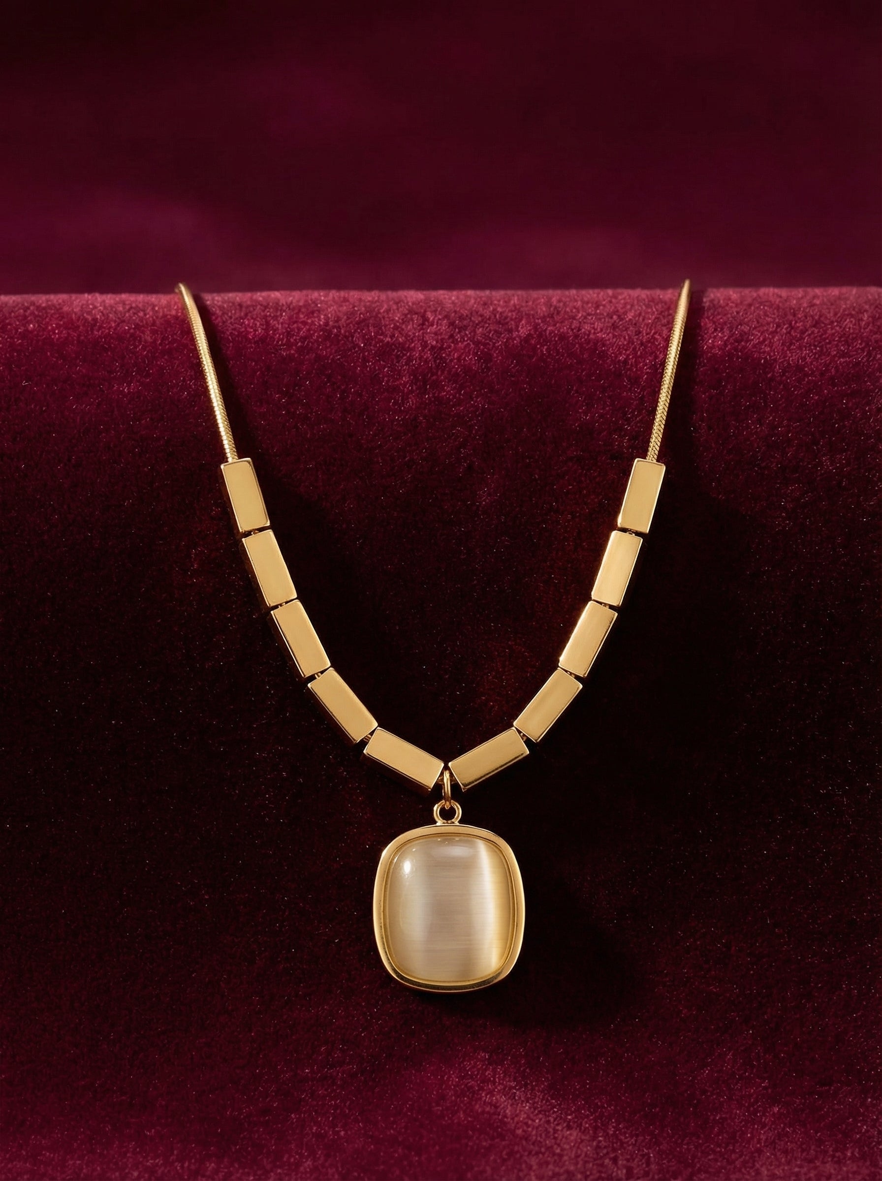 Crafted from premium artificial jewelry materials with a rich gold-tone finish, this necklace delivers the luxury of fine jewelry with everyday wearability. The textured pendant catches light beautifully, creating dimension and depth. The balanced proportion between the chain and pendant ensures the piece feels cohesive and well-designed. The comfortable length works beautifully worn alone or layered with other necklaces.