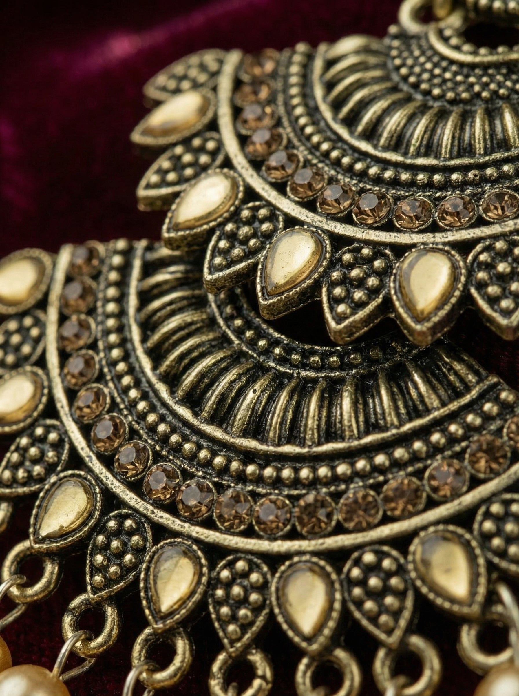 Made with coated metal and faux pearl materials, you get that gorgeous jewelry look at an affordable price. The filigree detailing and pearl danglers give you that classic Indian jewelry aesthetic. Perfect for anyone who loves traditional designs but wants something that's practical and budget-friendly. Great quality and beautiful craftsmanship that makes you feel confident at any celebration.